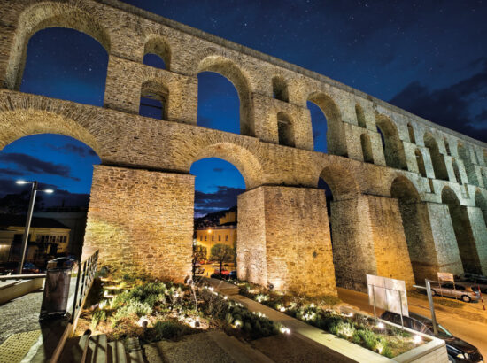 The most characteristic monument of Kavala is the large, arched aqueduct, known by the name “Kamares” (Arches), with a length of 270 m and a maximum height of 25 m. In the early 16th century, the arid peninsula of Panagia found a water supply in the streams that ran from the area of Old Kavala. The source of this water, which is located at an altitude of 400 m, is known as “the mother of the water”, “Soubasi” or the “three Karagatsia”. The Kamares in their present form date to the early 16th century and are attributed to Ibrahim Pasha, the vezir of Sultan Suleiman the Magnificent. They were built in 1520-1530, a period during which many infrastructure works were carried out in Kavala, with the aim of reconstructing the city after the destruction of 1391. The Kamares are a huge structure, out of proportion to the size of the then insignificant settlement. It is believed that there had been a Roman aqueduct on this same spot, over the ruins of which the Kamares were built. This old aqueduct supplied water to the town of Kavala through the region of Suyol (su-yol: “waterway”) until the early decades of the 20th century. The Kamares are no longer of vital importance, but they maintain their beauty and grandeur and are a landmark of the town.